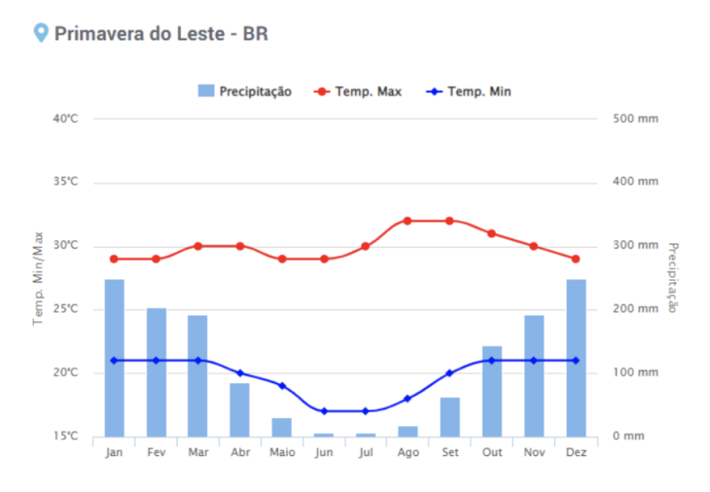 Têm-se condições ótimas de precipitação e temperatura durante o período de primavera-verão-outono para às atividades agrícolas de safra e 2ª safra.